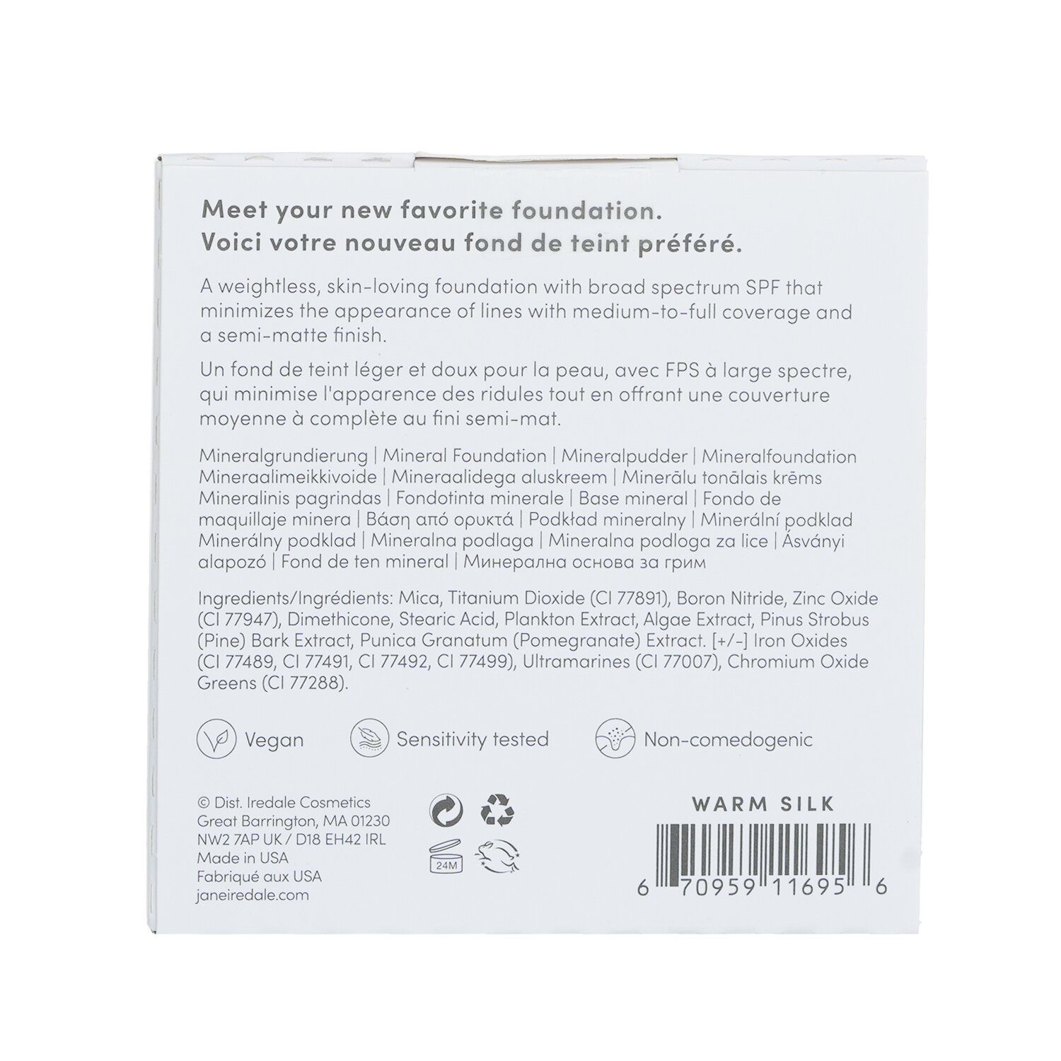 A mineral-based powder makeup packed in a refillable compactBroadly protects skin from the damage of UVA/B raysProvides optimal coverage of discoloration & minor imperfectionsWater-resistant & highly pigmentedLeaves you a flawless, natural looking complexionFree of oil, talc, dyes & parabens