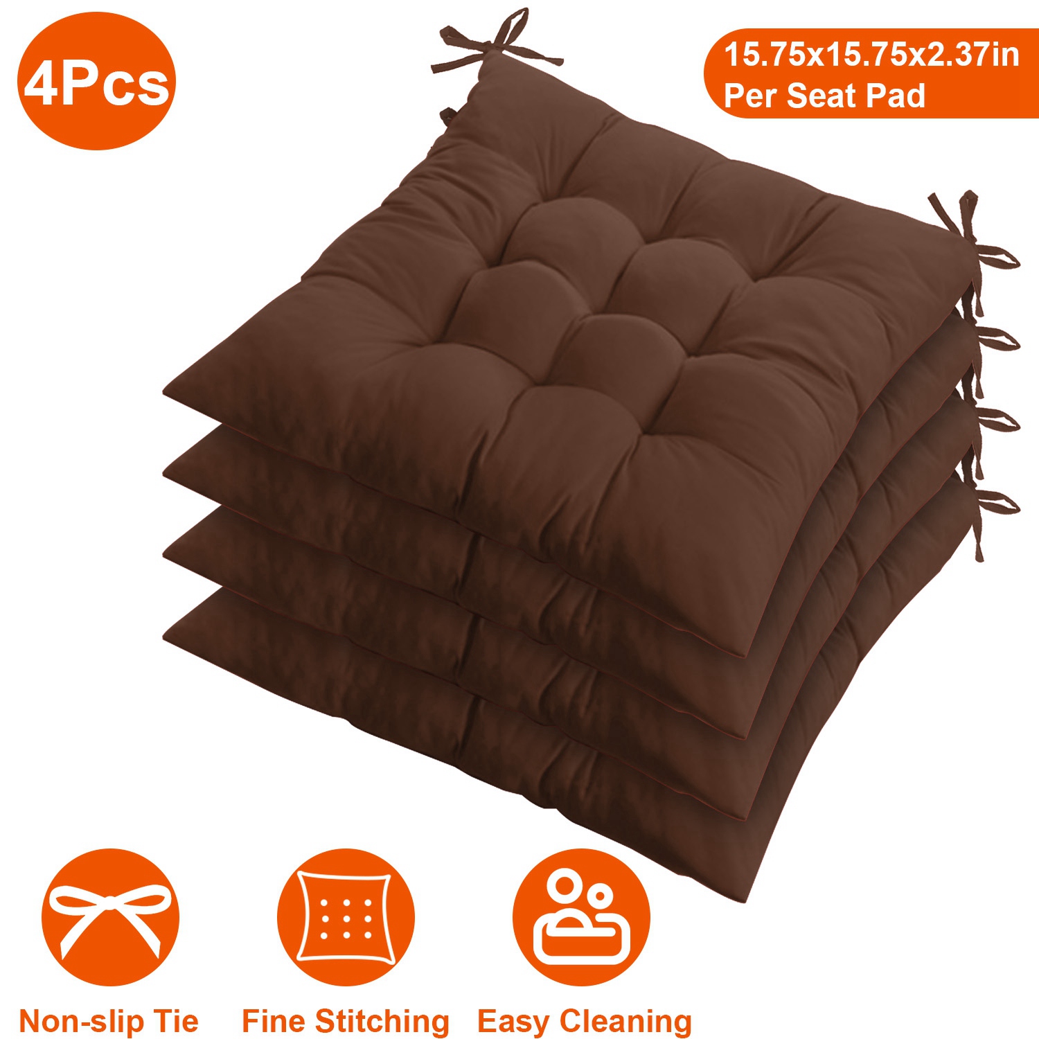 4Pcs Chair Cushion Pads Pillow 15.75x15.75x2.37in Soft Tie On Square Sitting Mats For Home Office Car Sitting Travel