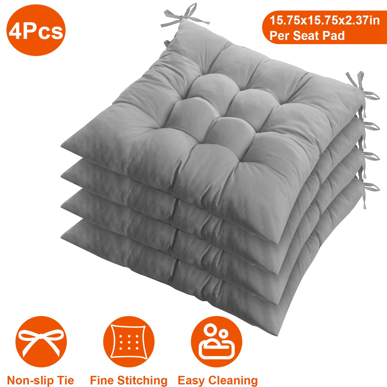 4Pcs Chair Cushion Pads Pillow 15.75x15.75x2.37in Soft Tie On Square Sitting Mats For Home Office Car Sitting Travel