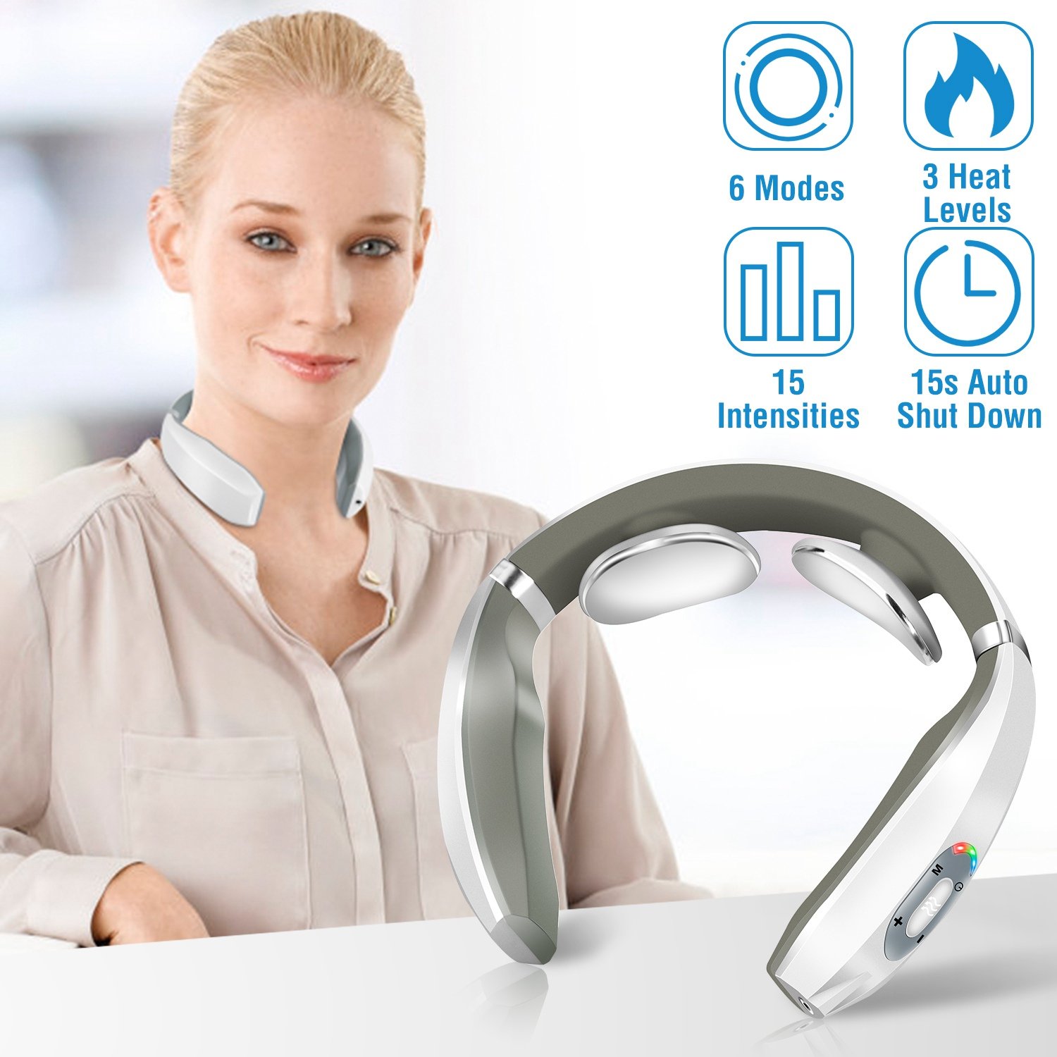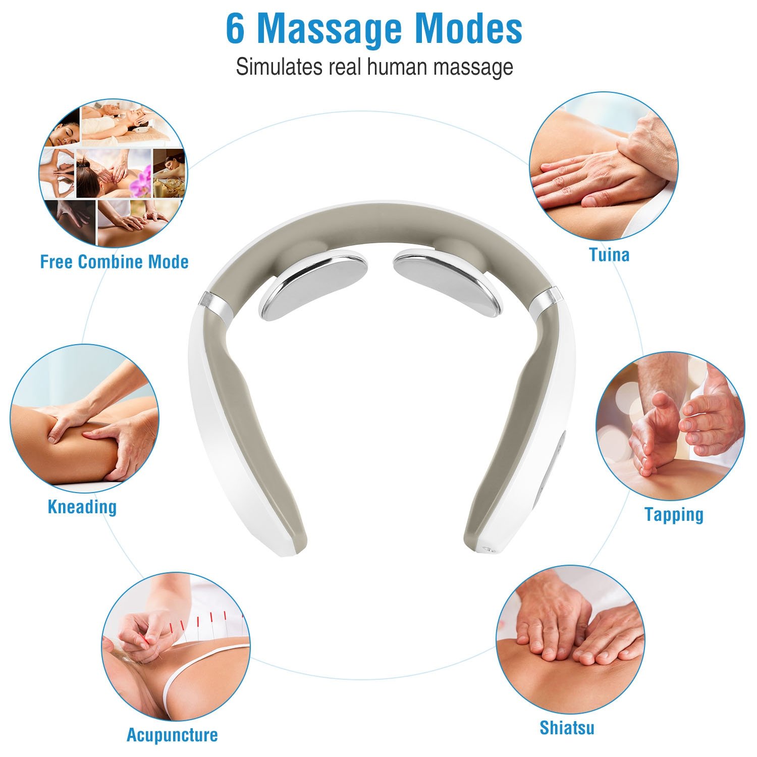 Home > Electric Neck Massage Intelligent Rechargeable Pulse Therapy Neck Massager w/ 6 Modes 3 Heating Modes 15 Intensity For Office Home Travel