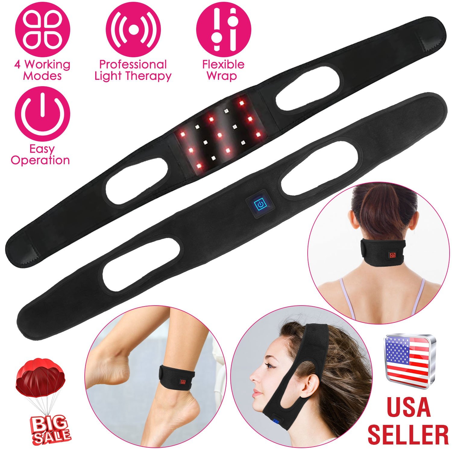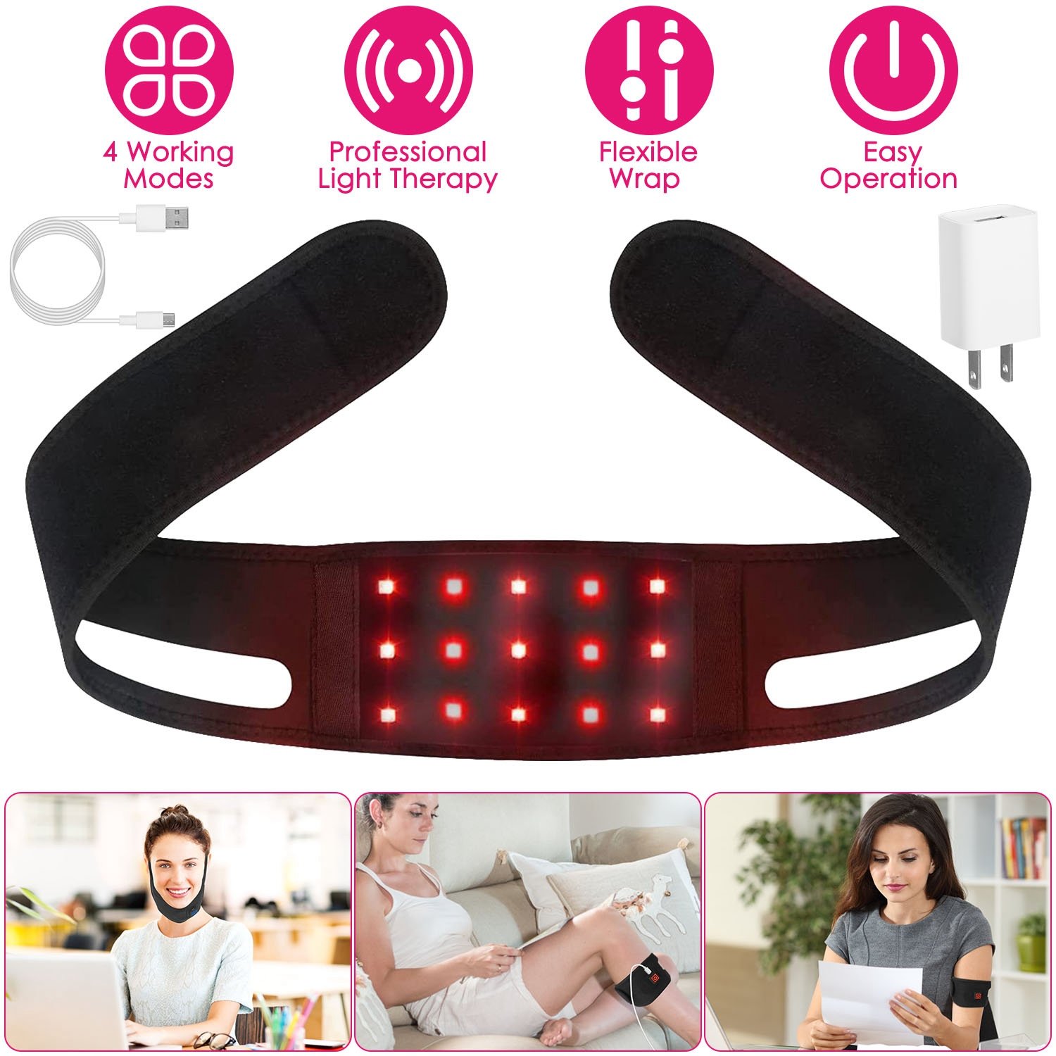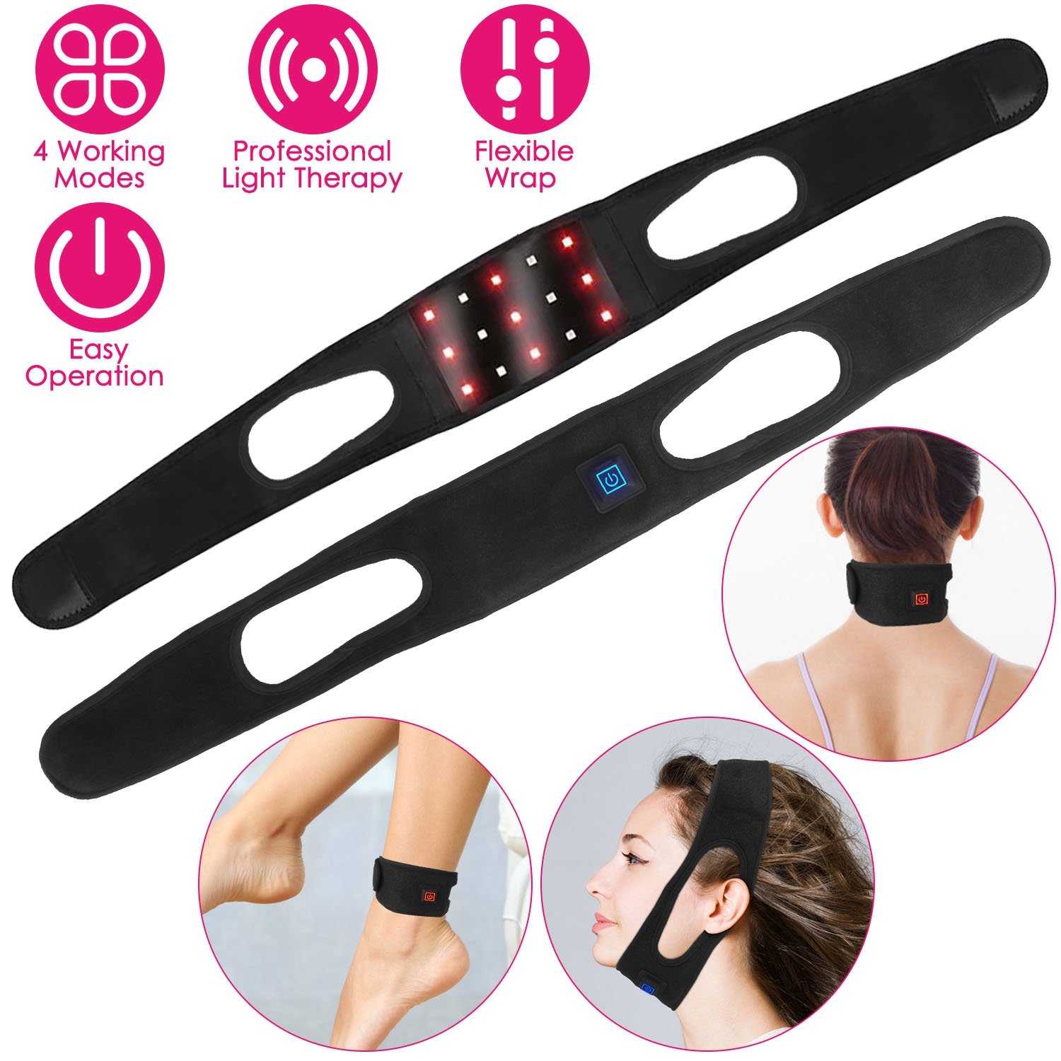 Our red light therapy wrap is an affordable and practical choice for people who have muscle strains, sports injuries, stiff necks, and muscle pains problems. Adopt 15Pcs LED lights, 9Pcs 660nm red light can effectively promote blood circulation and cell metabolism and 850nm infrared light can relieve painful and reduce muscle tension. You can adjust 4 working modes with different setting times according to your real situation. Soft and skin-friendly belt has great flexibility and breathability, bring you comfortable experience. Perfect gift for Valentine Day, Mother’s Day, Father’s Day and Thanks Giving Day.